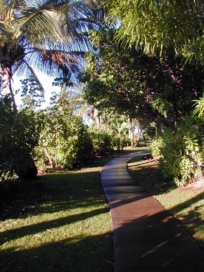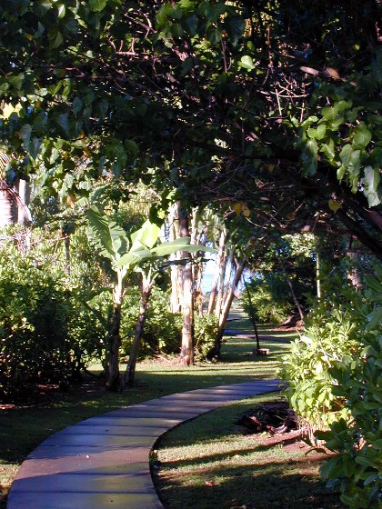 Here is the path to the beach from the bus stop...