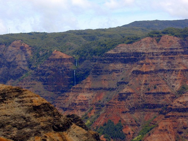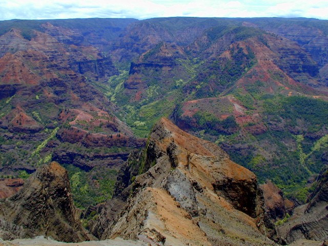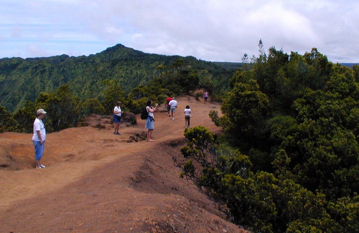 It turned out, on that week day morning, there were no compact rental cars available anywhere. We took the bus to Kekaha instead and got in my old, questionable Tercel and some munchies and headed up to Koke'e Park and the Waimea Canyon and Kalalau Overlooks. (Trusty Tercel made the trip fine and no over-heating).