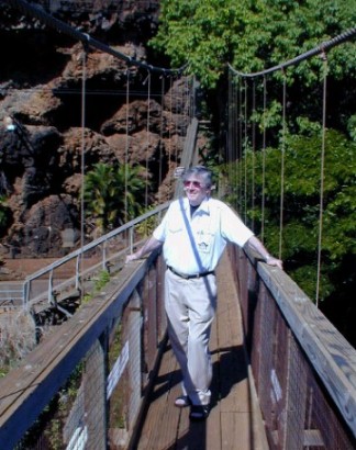 The next morning, he insisted buying me a local-style breakfast. We had Loco-Moko at Yumi's in Waimea, then I guided him to the Menehune Ditch and the Waimea Swinging Bridge.