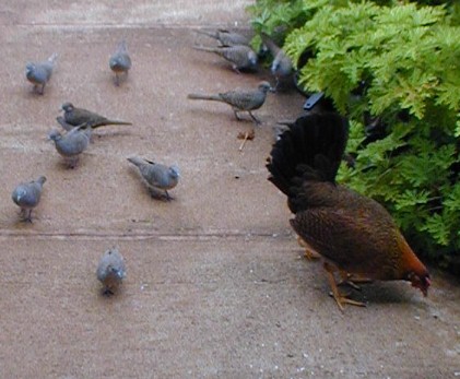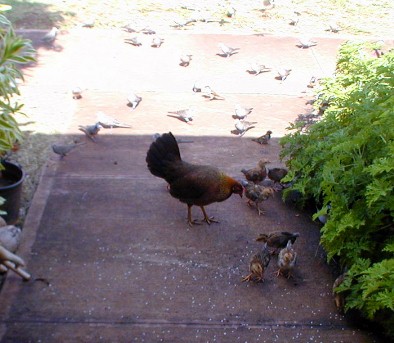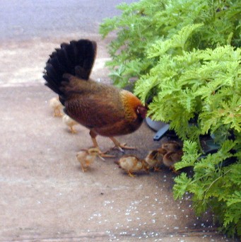The first day the mama brought her eight chicks over.