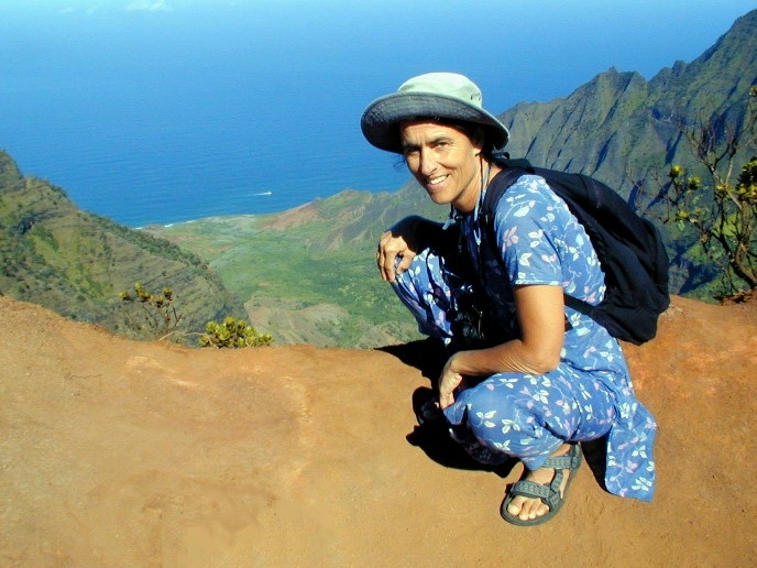 Linda at the edge of the Kalalau Valley.