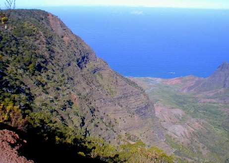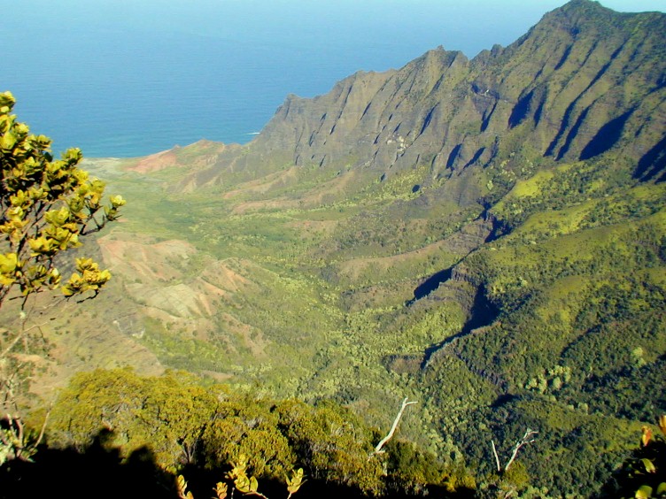 A look down onto the floor of the Kalalau Valley.