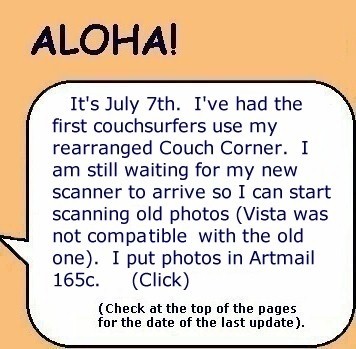 Alex and Sara flew to Big Island from Boston to later attend a wedding on Kaua'i. They "surfed my couch" on the 3rd and 4th while exploring the west side. They hiked into Waipo'o Falls and caught a Polihale Sunset on the 4th. They saw fireworks of the First Annual Fourth of July celebration from a distance. I watched those fireworks from Betsi's yard about 100 yards away. I didn't walk back for my digital camera when I remembered how, with the camera's delay before the shutter snaps, I mostly missed the good shots in the past. That was a mistake. The fireworks were great! It would have been difficult to get "dark sky shots" with my camera.