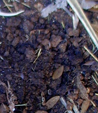 There is a packed layer of humus about 3/4 inch on top of the black plastic underneath.
