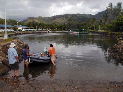 On August 14, Clifford took Timmy, Doug and I on the Wailua River cruise to Fern Grotto to test the repairs he made on a "good deal" zodiac, motor and trailer he bought.