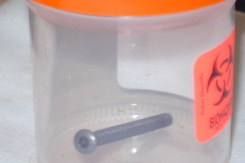 I hope you all have a nice Thanksgiving. Mine will be a little different this year. My ankle is healing well and there is no pain. A lot of time is devoted to it each day...three sessions of a series of exercises plus spending some of the day with my "ankle higher than my heart." I had to go back into surgery so that Dr. Rick could remove the 2-inch screw that was holding two bones together as the ligaments reattached. I have the screw (or someone is playing a joke on me)...