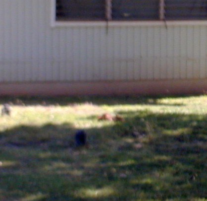 One morning, I saw the sick mother hen, now dead, across the grass near my neighbor's house and the little chick was next to her.