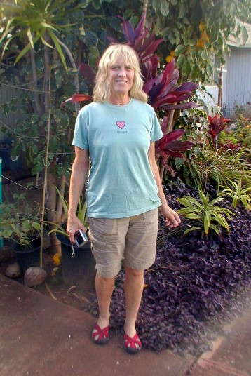 Now a change of subject, Julie S. a friend of my former student and friend, Tony B, was spending some time on Kaua'i. Tony suggested that she contact me and that I could show her and her brother some of the good sites on Kaua'i. My broken ankle recovery didn't allow for that, but she did drop by 15B to talk story for a while. She lives in Cayucos on the central California coast where he also lives.