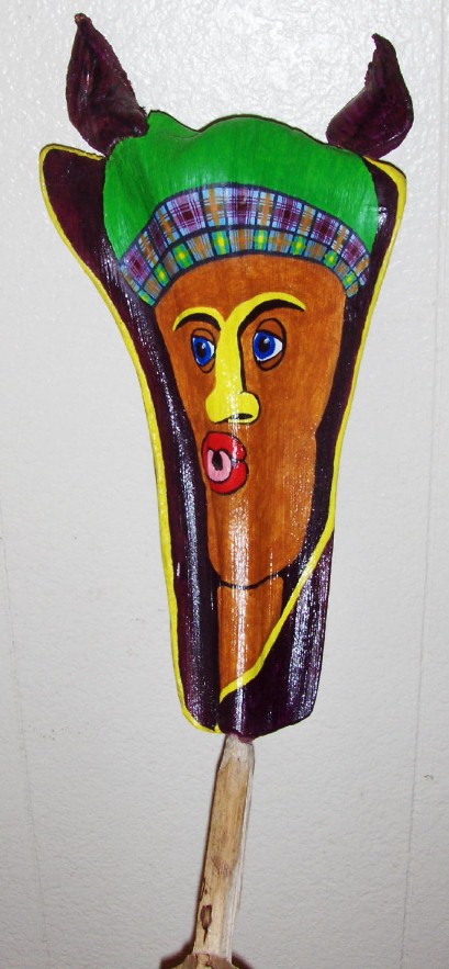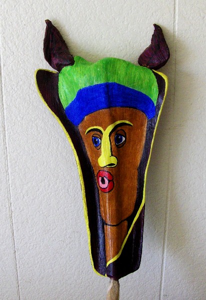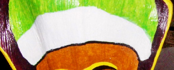 The headband has been painted with many, many coats of gesso to smooth out the grooves in the palm frond.
