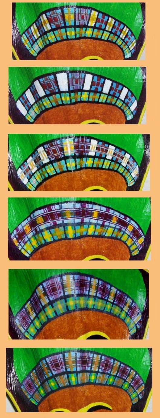 My project is to paint this MacDonald tartan design on PFP002's headband. The tartan's colors are from woven colors which creates a blend of the two colors where they intersect. To include the blend colors on the painted headband makes for difficulty, but I will attempt something like that using plenty of "artistic license."