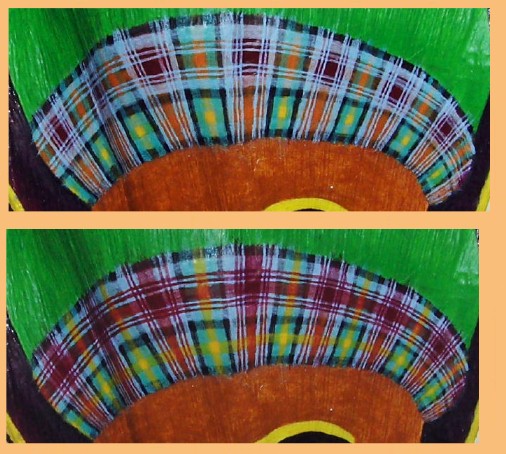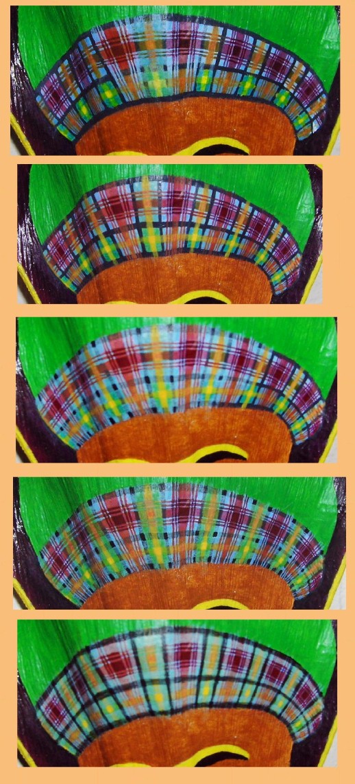 I have not finished painting the MacDonald of Skye tartan headband, but I'm going to get this Artmail online explaining a change in direction of the future Artmails. For one thing, I'll use the above photo with the introductory voice bubbles of the Artmails and homepage. I won't be putting up so many digital camera images.