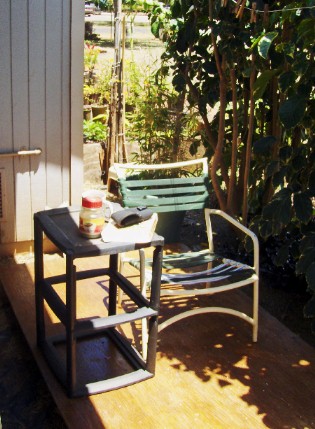 Some of the reading that I do is outside in The Nook...