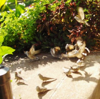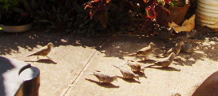 When I sit in The Nook, I usually take a container of rice because the doves will come around and they are fun to watch their behavior...here they come now...