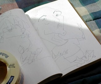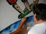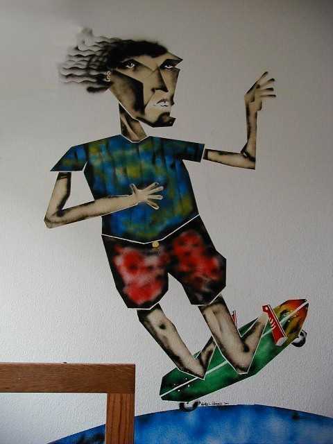 My son, Michael, did one of his spray can figures on Ryan's bedroom wall. A picture story of the art follows: