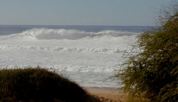 Later in the day I was up at Cane Top Pavilion looking for the return of the humpback whales. They are late coming to Polihale this year. Tashi saw some off from her house last week, so I've been waiting for their return here. It's amazing watching them when they are having fun offshore. It's also enjoyable watching the large surf pounding the shores. I tried to capture some of that action with this series of photos. Scott MacD and Tony B will appreciate these: