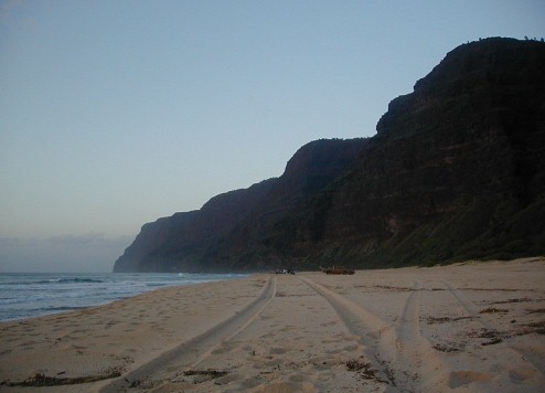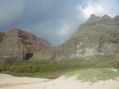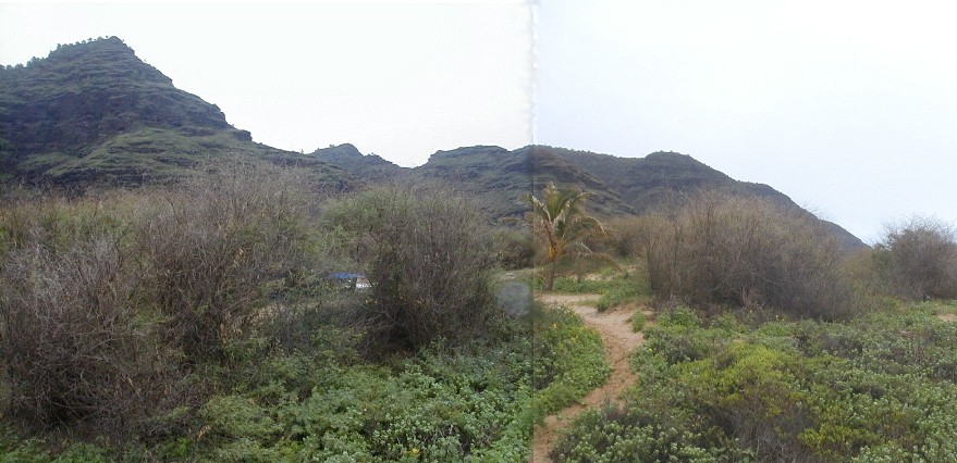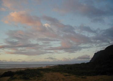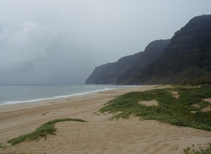It's been a very different year at Polihale...a lot of rain which makes it very green. Quite a few people who have visited Polihale and have my URL go to Artmails and see how Polihale changes throughout the year. I have taken a bunch of photos and have quick-stitched some together. Also, there has been some newsworthy activity near Polihale. This created a Ranger Danger situation. Yes, I got hassled...I have moved to another place much more isolated, but still close enough to all the necessary facilities. It's already the 21st. I haven't really had a lot of computer time...clouds blocking the sun and rain closing the solar panels.
