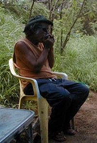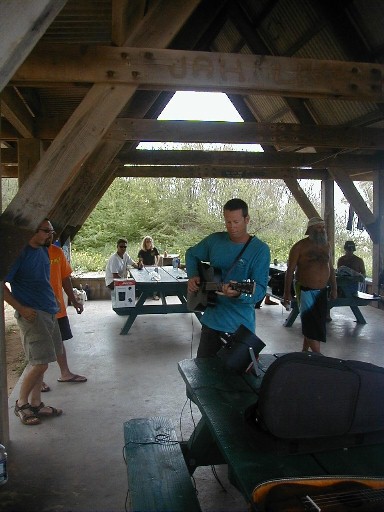 It's the 18th at the Double-Burner Pavilion. That's the newly-formed Polihale G-String Band warming up in the background.