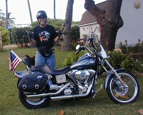 Polihale Wally stopped by Tashi's while I was online. Check out his Harley and his 100 year anniversary jacket.