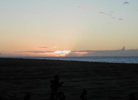I've been painting and not taking many photos. I do check out the sunsets, but they haven't been the spectacular kind. After three nights in Kekaha then getting Artmail 60 online, I returned to Polihale: