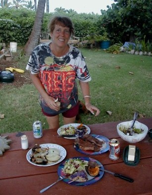 I have so much to do in Kekaha that I only went out to Polihale for one night last week. I talked with Jeanne in Waimea and she wanted to go out with me because she hadn't been there for a long time. We picked up her little tent and ukulele and some more food and went out to my spot and set up camp.