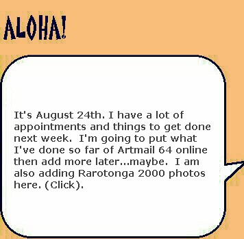 It's the 24th. I have a lot of appointments and things I have to get done next week. I'm going to put what I've done so far of Artmail 64 online then add more later...maybe. I am also adding Rarotonga photos here.