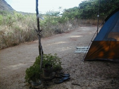 I went out to Polihale last Wednesday to relax before what was going to be a busy week. My camp area was waiting for me to set up my tent.