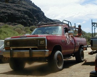 I checked out the day area and saw a bunch of vehicles by The Tree so I decided I would go back to Kekaha. Parnell saw me turn around then chased me down in this pickup and said they wanted me at that party.