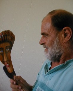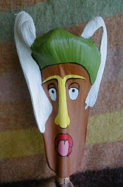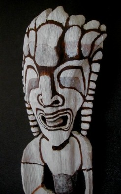 This is one I carved before it was dry. I didn't finish painting it. It is a blend between Hawaiian and Rarotongan styles. Maybe it's a Kona-style Kanaloa/Tangaroa image. I'm going to finish painting it.