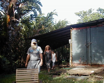 Mo'o with Dallas, Gilbert and Kalalau Ron at Polihale on August 4, 2002.