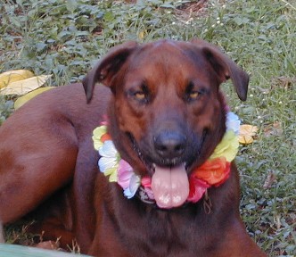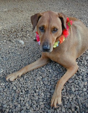Dallas and Gilbert's dog, Mo'o, died of old age last week. They had left for New York about a week before. I remember Mo'o from before Hurricane Iniki in 1992, but I'm not sure just how old she was. She was a good friend. (Mo'o means lizard in Hawaiian). I'll miss her. Pirate Ray had a "wake" for her last Saturday.