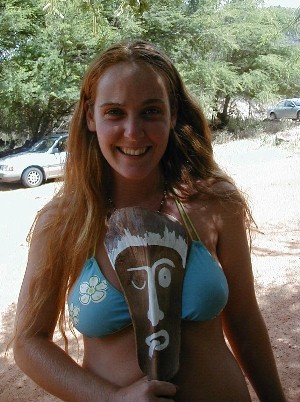 Pointing at my shark-tooth gift from Mizu.