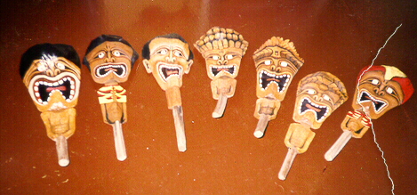 In the South Pacific, Tangaroa is much better known. Tangaroa is the national symbol of the Cook Islands and is found on the one dollar coin. There are many Tangaroa carvings around the Cook Islands and many being carved for sale to tourists. Here are some photos from my Rarotonga 2000 trips' visits the the carving factory of Rarotonga.