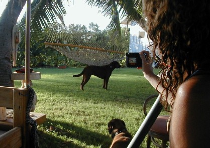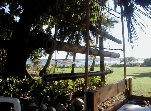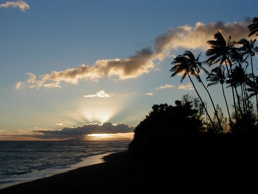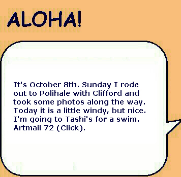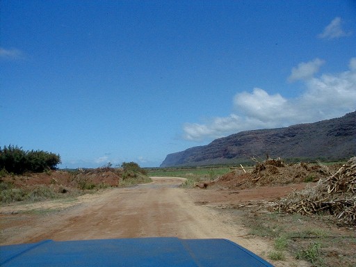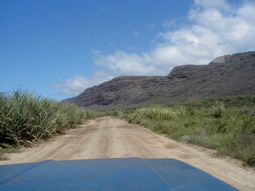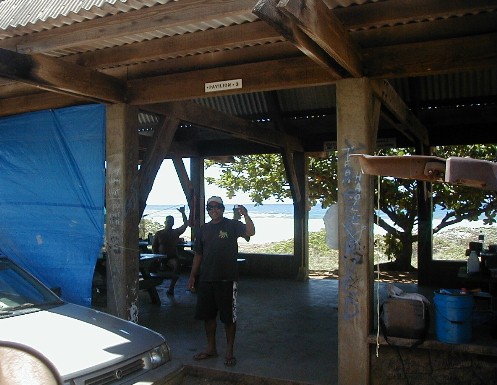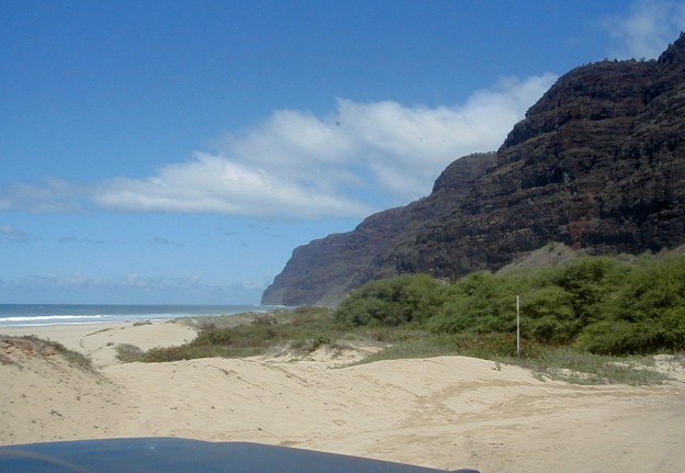 Sunday, I was thinking that I would put more photos from my 1999 visit to the island of Atiu. I hope to return for a visit in early 2004. The phone rang. It was Clifford. At work at Polihale when he was walking up to Pavilion Two, he was asked what was wrong with the state pickup. He turned around and saw smoke coming out from beneath the hood. There was an electrical fire going on which he put out with the fire extinguisher. He had a ride into town as he was calling me. He was on his way home to get his pickup to return to Polihale to get his things out of the truck. He asked me if I wanted to go along. Of course I did. I hadn't wanted to drive out the day before because it had rained Friday and I didn't want to deal with the mud. So, riding shotgun I could take some photos. My camera batteries weren't charged! I did a quick charge until he arrived. I had no idea how many photos I could take with those incompletely charged batteries.