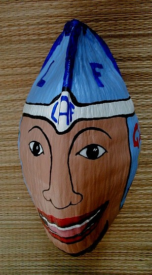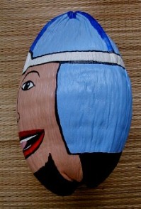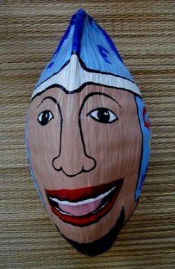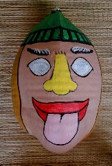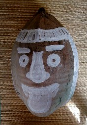 One of the things that I was painting was this coconut head for Tashi. She has a bunch hanging in some trees. This one turned out pretty silly.