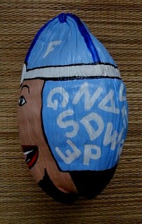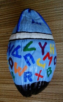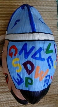 I have another coconut that I am working on now for Lauren. If I do it the way I originally wanted, there is no way she could receive it before Christmas. I was going to paint a coconut head which I was going to name Alf A. Bett and he was going to have all the letters of the alphabet on his hat and flap. The L, A, U, R, E, and N, were going to be one color, the other letters not that color. I was also thinking of painting all the digets, too, No. 1 in Lauren's color.