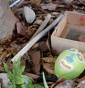 After scrubbing it clean, I put the coconut in the freezer for two or three days. I figure that is sure to kill any tropical vermin that had lived in it. Next, I gave it two coats of gesso, then...