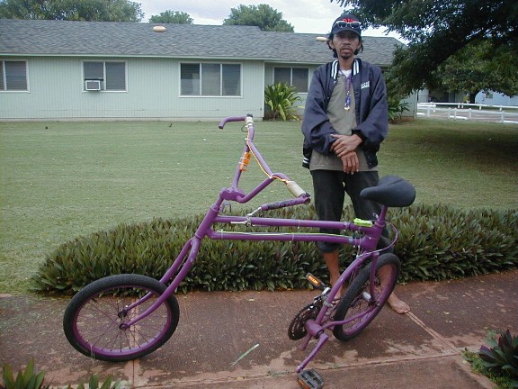 Kolo was by earlier...brought me some tasty fish...cooked. Talked story awhile then he left. Later, as I was typing this, Solomon came by on his bicycle that I referred to in Artmail 86. I got my camera out to take a photo or two and add it right here: