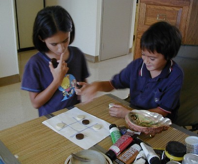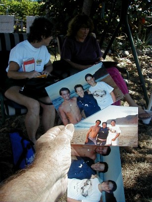 Tashi checks out some of Pat's photos.