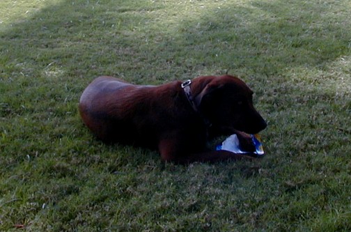 One of Sophie's "tasty" finds...a dead eel.