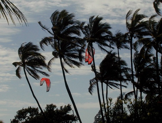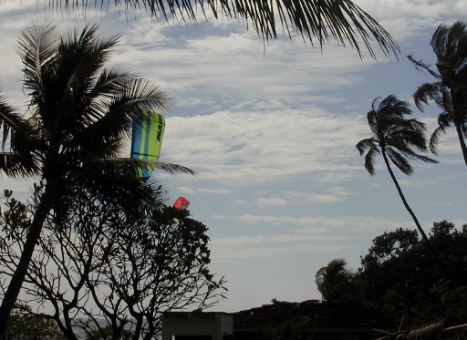 On windy days, kite surfers arrive.