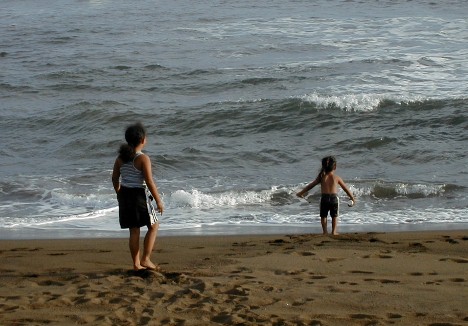 RJ watches Lani at the laptop.