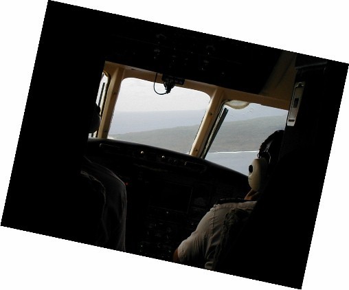 When I put the photos on the page, they will not necessarily be in the order that I took them. I went to the harbor shortly after arriving, so I'll show my arrival, the harbor, and the road up to Are Manuiri. The five villages of Atiu are at the top of a 14,500 mountain...only the top 230 feet are above sea level. I want to show a few of the photos from the airplane so you can see the location of the harbor.