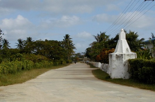 Looking left from the front of Are Manuiri and looking right on the main road of Atiu.