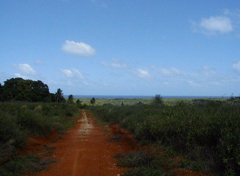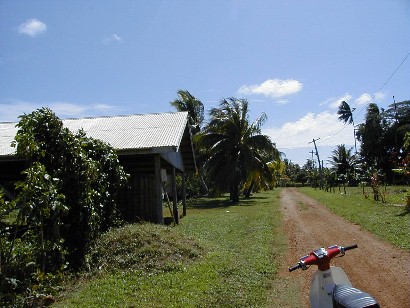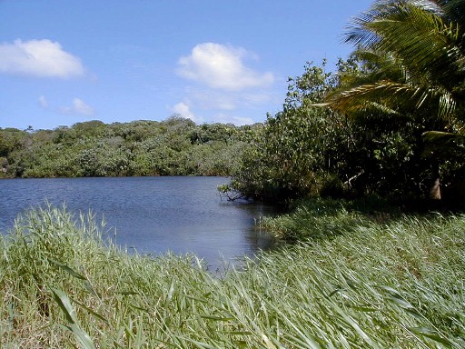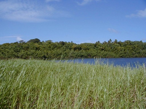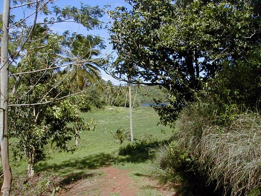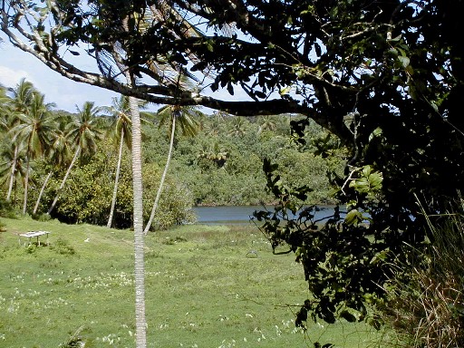 On my last day on Atiu, I wanted to get photos of Atiu's lake, Teroto. In 1985, while on Rarotonga, the capital island of the Cook Islands, I purchased the book pictured. In it was a black-and-white photograph of Teroto taken from a distance and also a description of the lake. It is a freshwater lake which is tidal (water leval fluctuates with the tides). There are fish and eels in the lake and many Atiuans learned how to swim there. There is a tunnel connecting the lake with the sea (see map). The photos that I took were the first and only color photos I've seen of Teroto.