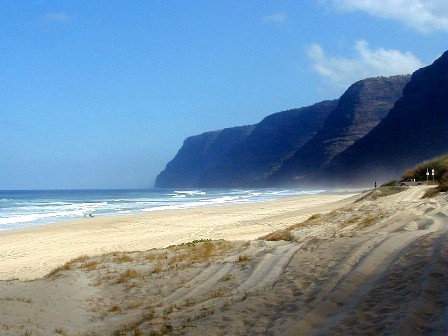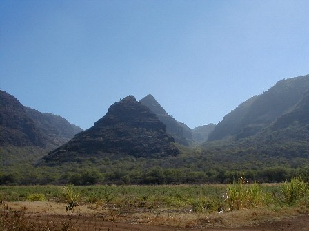When you get to a fork in the road, the left branch, which is very bumpy, goes uphill a bit, the right branch goes flat on to the Day Area. In this photo, you can barely see another cane road that goes off at a sharp right. That's Lapa Ridge across the field. Go up on the left to the Camping Area. At the top, the first place to park is at Cane Top or The Painted Pavilion.
