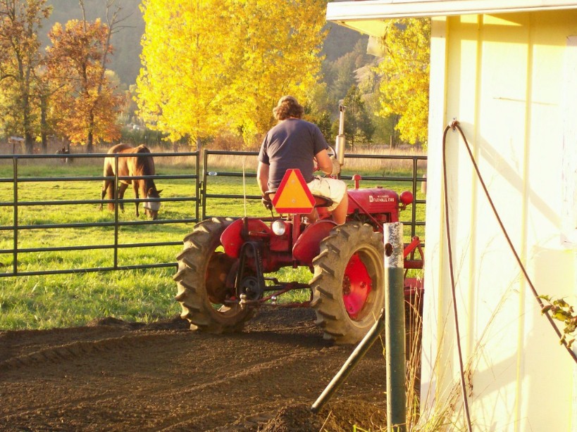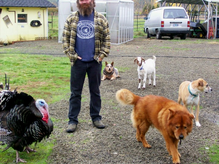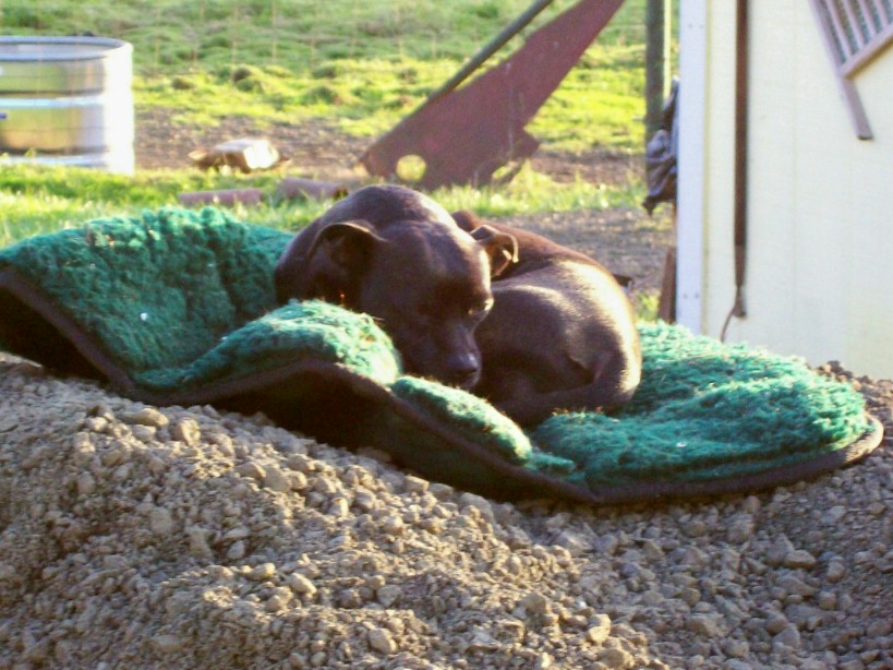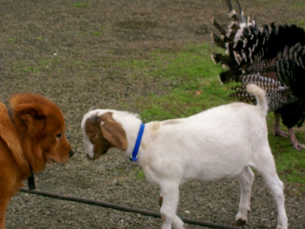 The animals always follow us around as we mill about the yard.