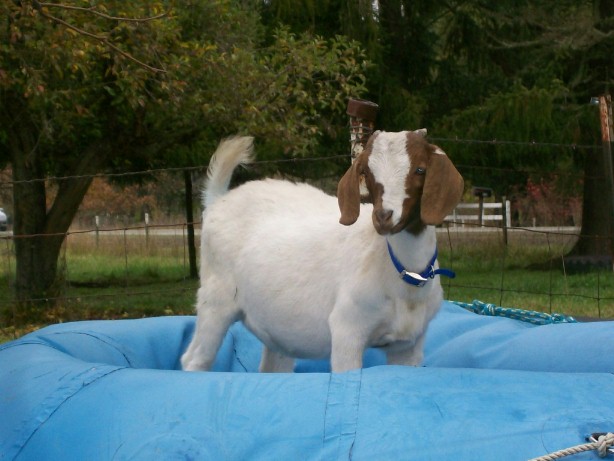 The "Goatee Goat Goat" a.k.a. Peanut, using the raft as a "Jolly Jump".