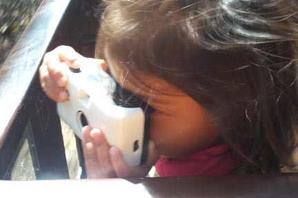 Handed the digital camera and she took this picture of Dad. At Griffith Park train ride taking photos.