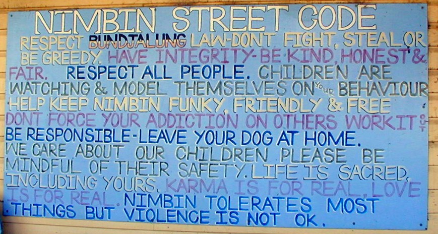 Walking from Rainbow Retreat into and about Nimbin and back.