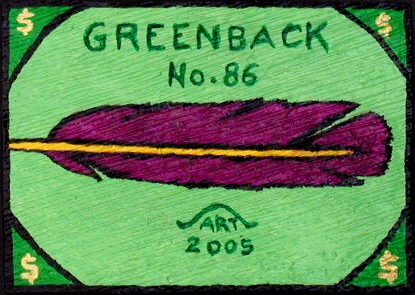 April. A drawing of the Purple Feather Greebacks will be with numbers 86 through ?. The Purple Feather Person featured will be PFP 10: